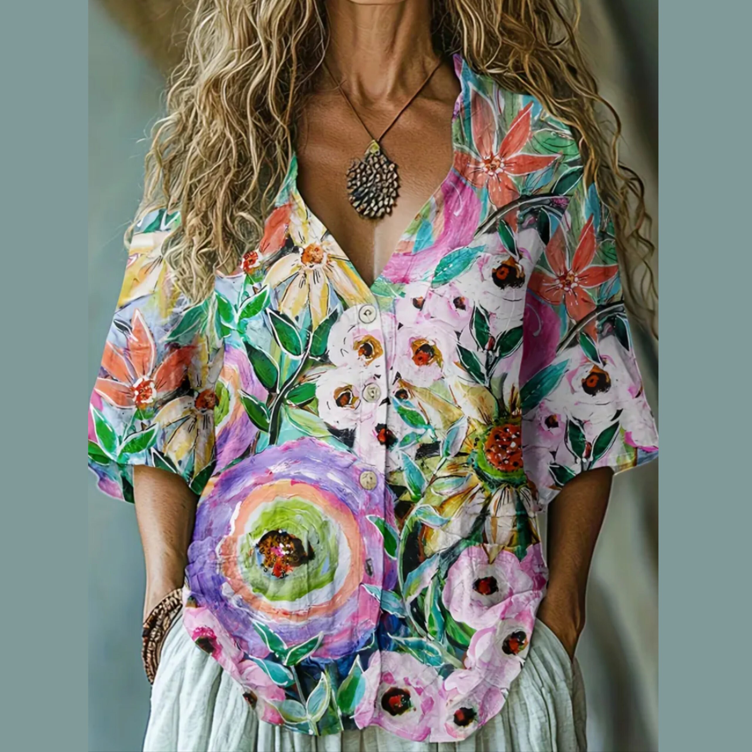 Blusa Bolsillos floral