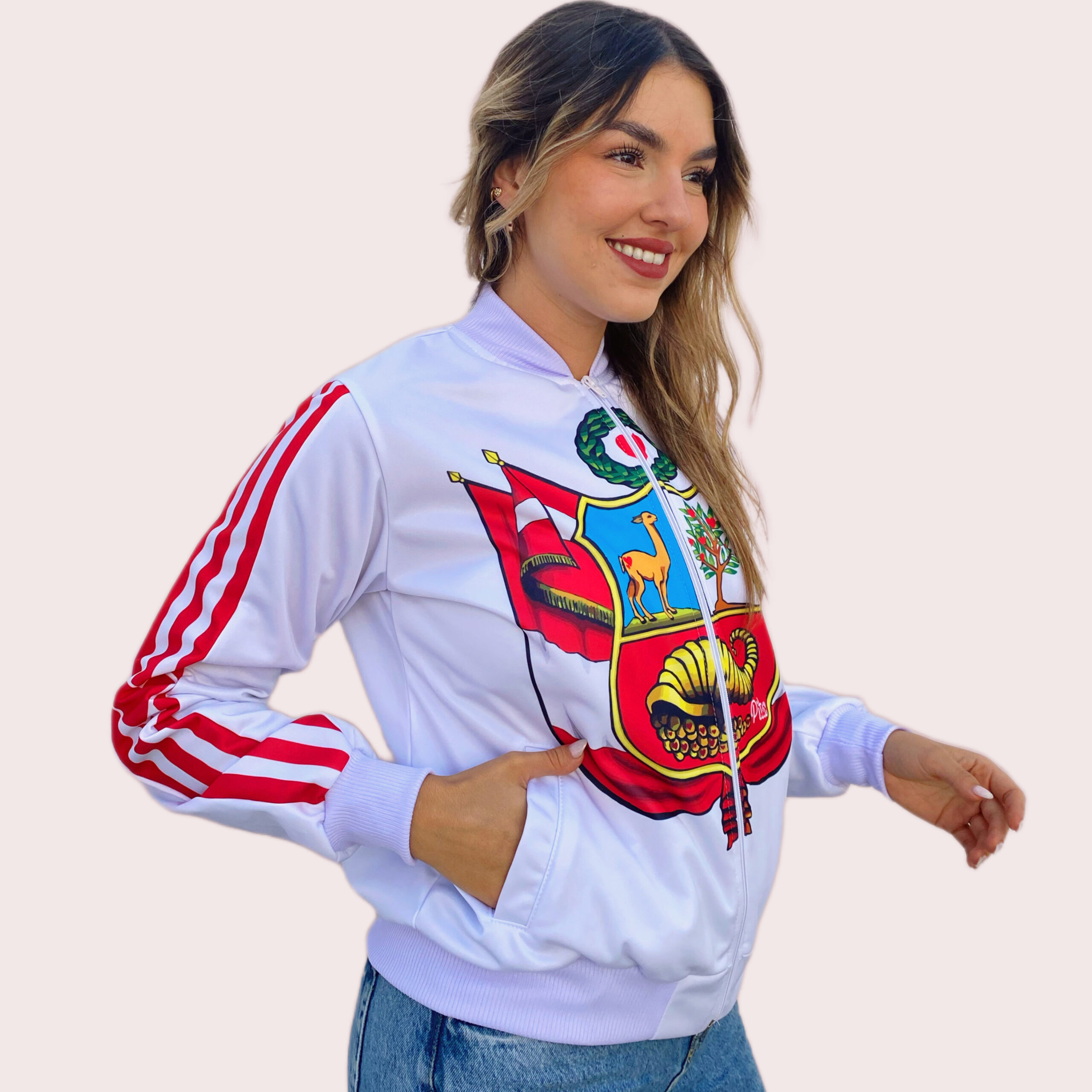 - Estampado tacto cero en toda la casaca , no destiñe , no se sale con las lavadas .