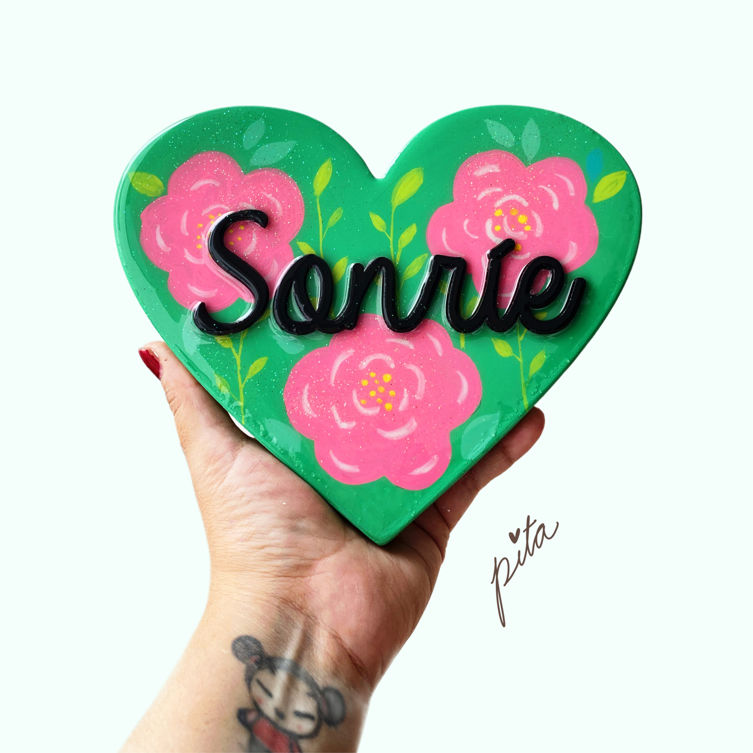- pintura hecho a mano , bañado en resina . trabajo artesanal .